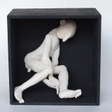 私の作品は裸体表現。男もあるのだが多くは女の身体なのだ。男の身体は体型が硬くてどこか建築物を思わせるところがある。硬くて表現の幅がどうしても狭くなってしまう。力強い表現のときには特徴が発揮できていいのだが、ちょっと優しい表現を入れると中性的な作品になっていく。こちらの意図とか狙ったものとの乖離ができる。ちょっと曲げてみてもポキっと折れてしまいそうな感覚に陥る時もある。反面女の身体を使うと曲げても反らしても不自然さがない。力強く作っても、女は女なのである。肉体的に骨格や筋肉のありようが柔らかく、どう曲げても反らしても不自然
