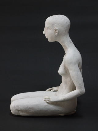 正座をしているので足の複雑な絡みが難しい。下肢に全体重がかかるポーズなのでそれらしい形を取らなければならない。裸の作品は隠れるところがないので、まあ、いいや、というわけにいかないのだ。後ろから前から破綻がないか、細心の注意を払って見なければいけない。